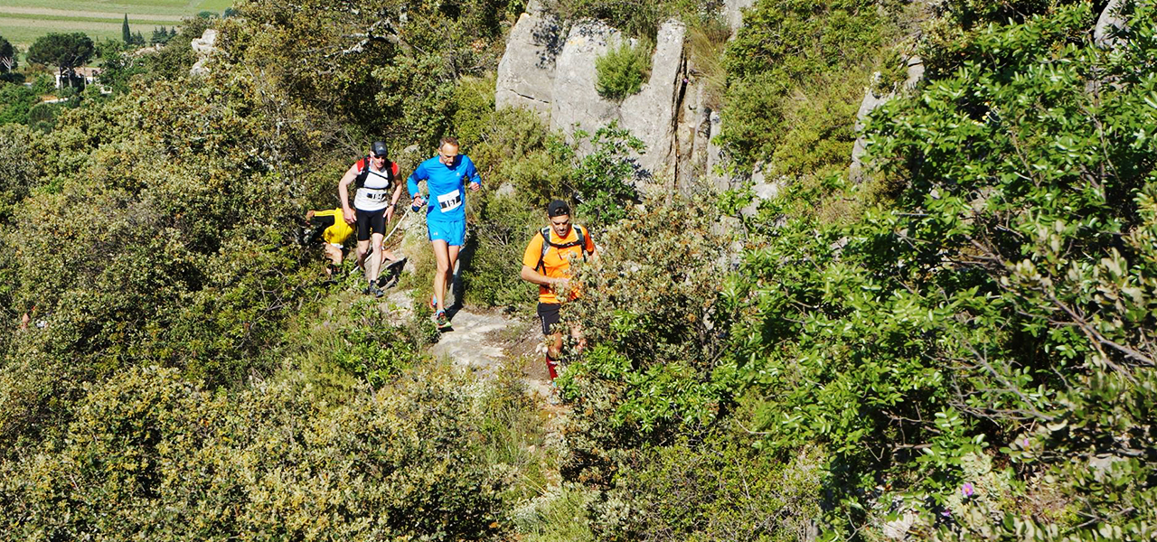 Le parcours vous conduira sans difficultés majeures vers le château de Gicon (km8) où vous pourrez vous ravitailler. Puis avec une succession de descentes et de montées sur de belles monotraces vous arriverez au château du Jonquier où vous pourrez admirez le panorama tout en reprenant quelques forces au ravitaillement (km 15) pour affronter la dernière partie et ses fameuses côtes des bois de l’aube, du Trabaud, ouf !!! un ravitaillement (km20), et la 680. Il ne vous restera qu’un dernier effort autour de la dent de Marcoule pour rejoindre le plateau dominant Chusclan et redescendre enfin vers le village traverser la Cèze pour arriver sous les clameurs du stade.