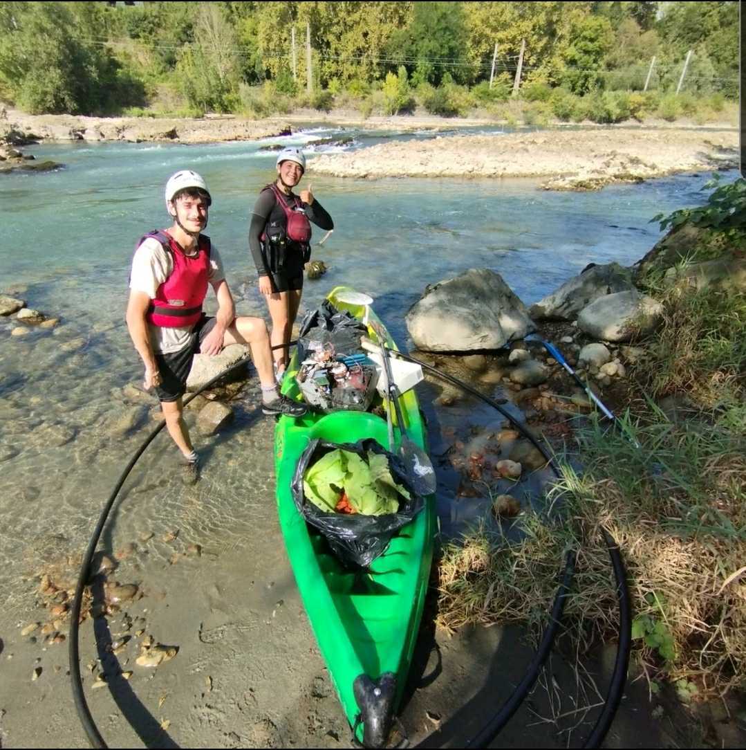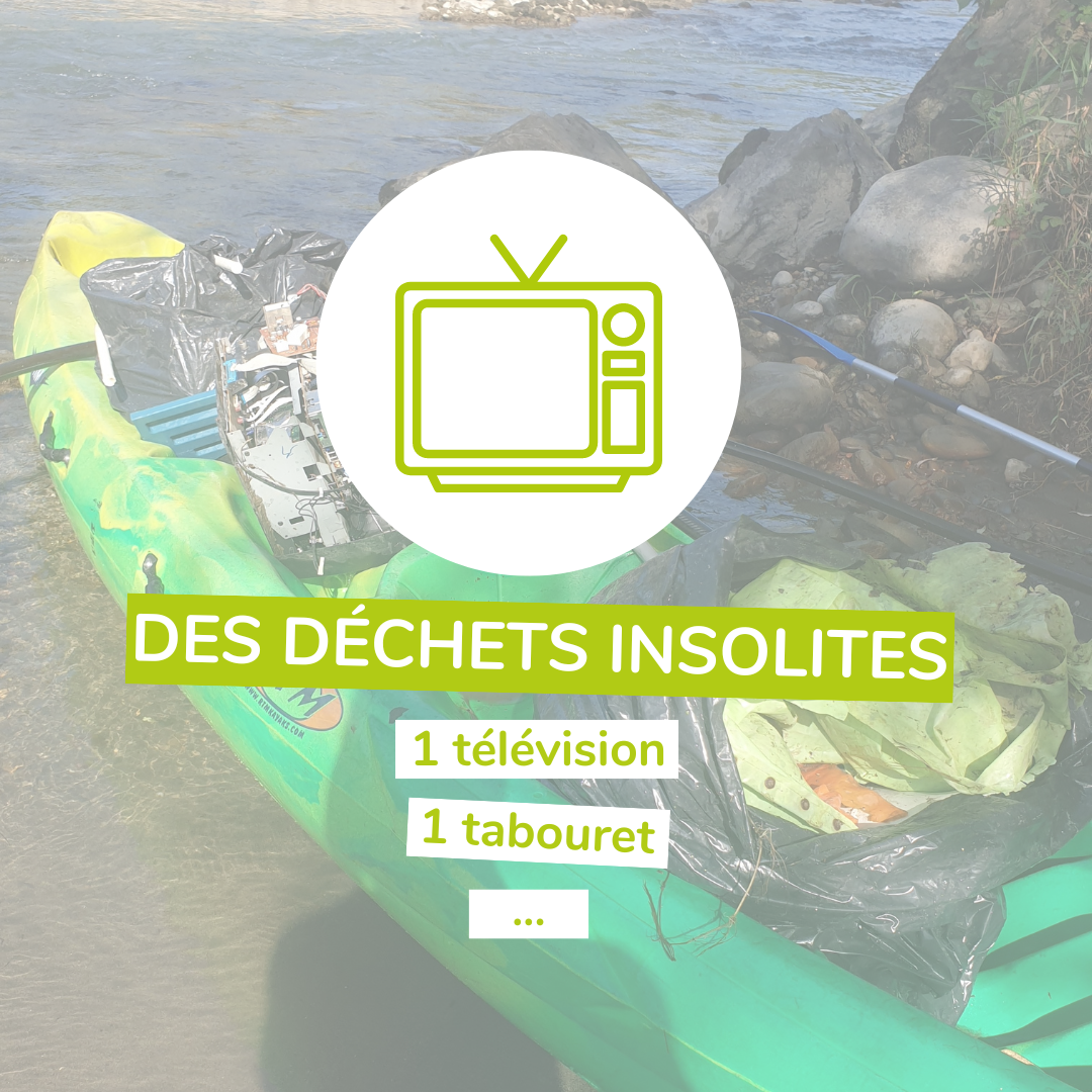 L’après-midi, nous participions au challenge « Marre des Crados ». Et c’est Pierre, rencontré durant la matinée qui a représenté fièrement les couleurs de TRF en pagayant 🚣♂️ le long du Gave de Pau pour récupérer un maximum de déchets. Et le résultat ? Un kayak rempli de déchets, dont certains, plutôt insolites : une télévision 📺, un tabouret 🪑, et même un tuyau ! 😲